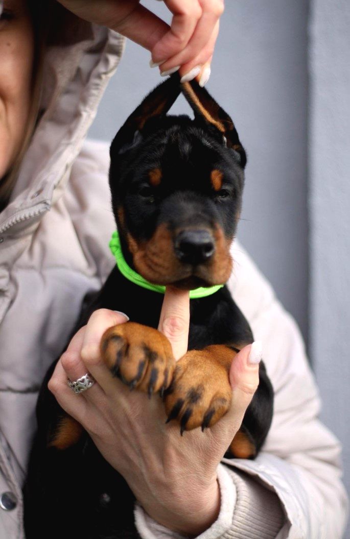 Üstün kökenli Doberman yavruları.